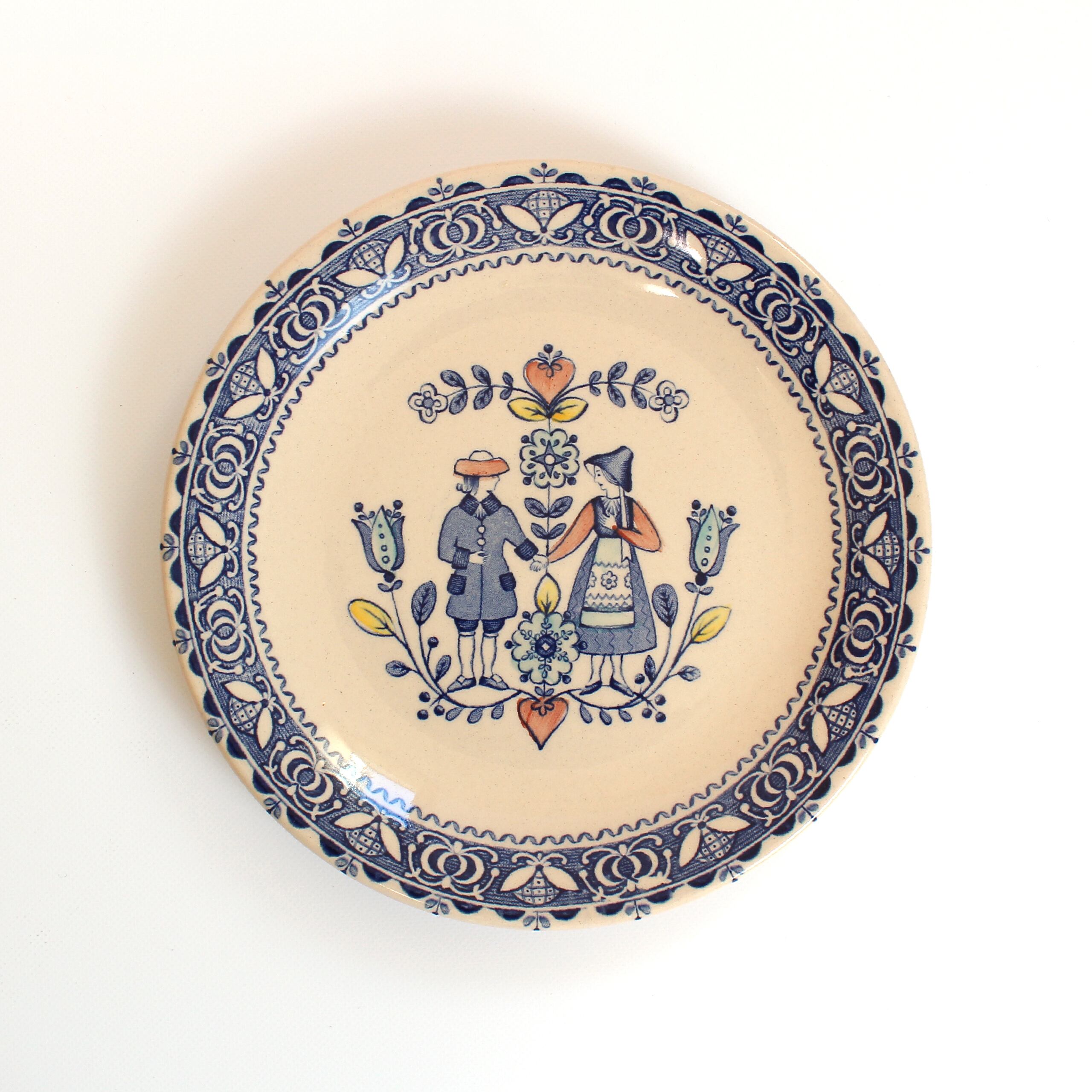 Johnson Brothersのパンプレート。"HEARTS&FLOWERS"と呼ばれるシリーズのものです。テクスチャのあるキナリのベースに、ブルーを基調にしたイラストが愛らしいです。チューリップなども描かれた春らしいプレートです。