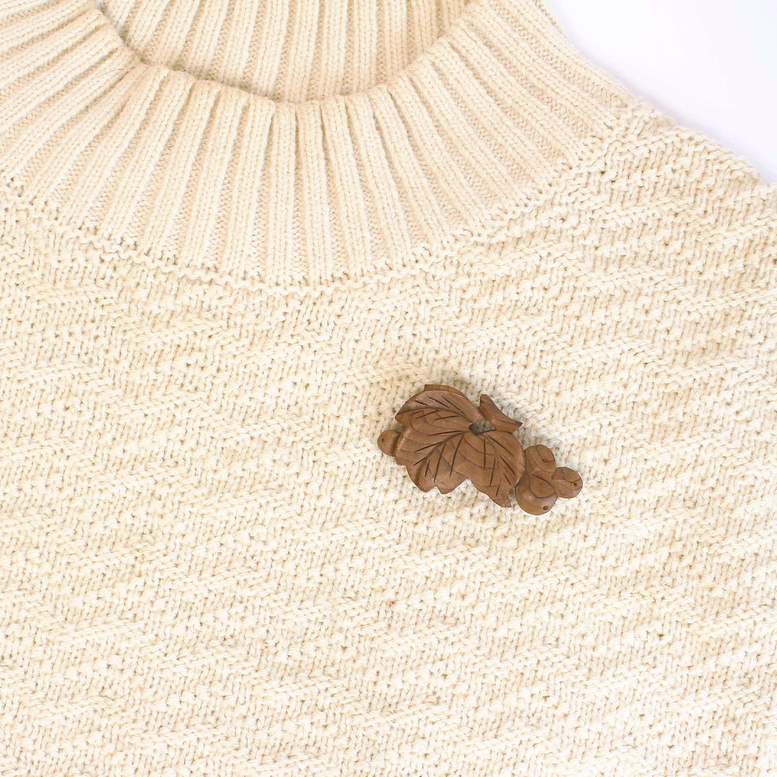 スグリの木製ブローチ。なかなか見かけないモチーフと木目を生かしたユニークなデザインが素敵です◎ひとつずつ丁寧に彫られていて、小さな赤い実が連なっている様子がうまく表現されています。葉の間にヌケがあってそこからお洋服が見えるようになっているので、どんな装いにも馴染みやすく着けやすいです。