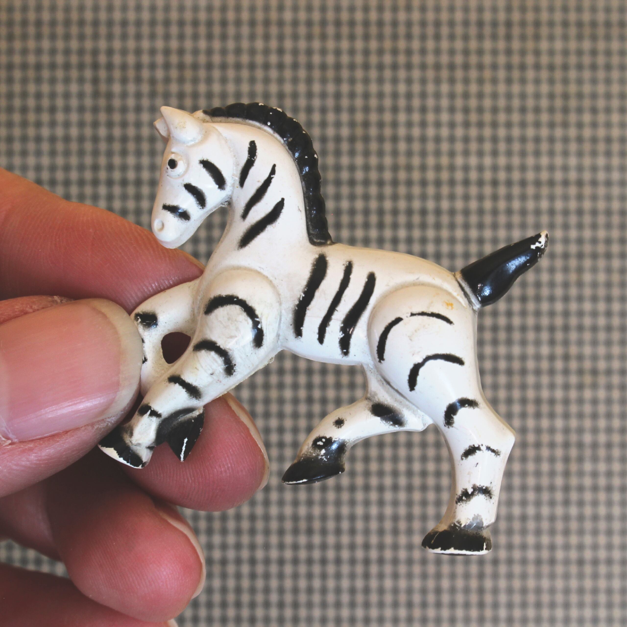 上目遣いのなんともいえない表情が個性的なシマウマのブローチ。動物のなかでもシマウマはなかなか見かけない珍しいモチーフです。プラスチックでとっても軽いので、タートルネックやブラウスの襟部分に付けていただくのもおすすめです◎