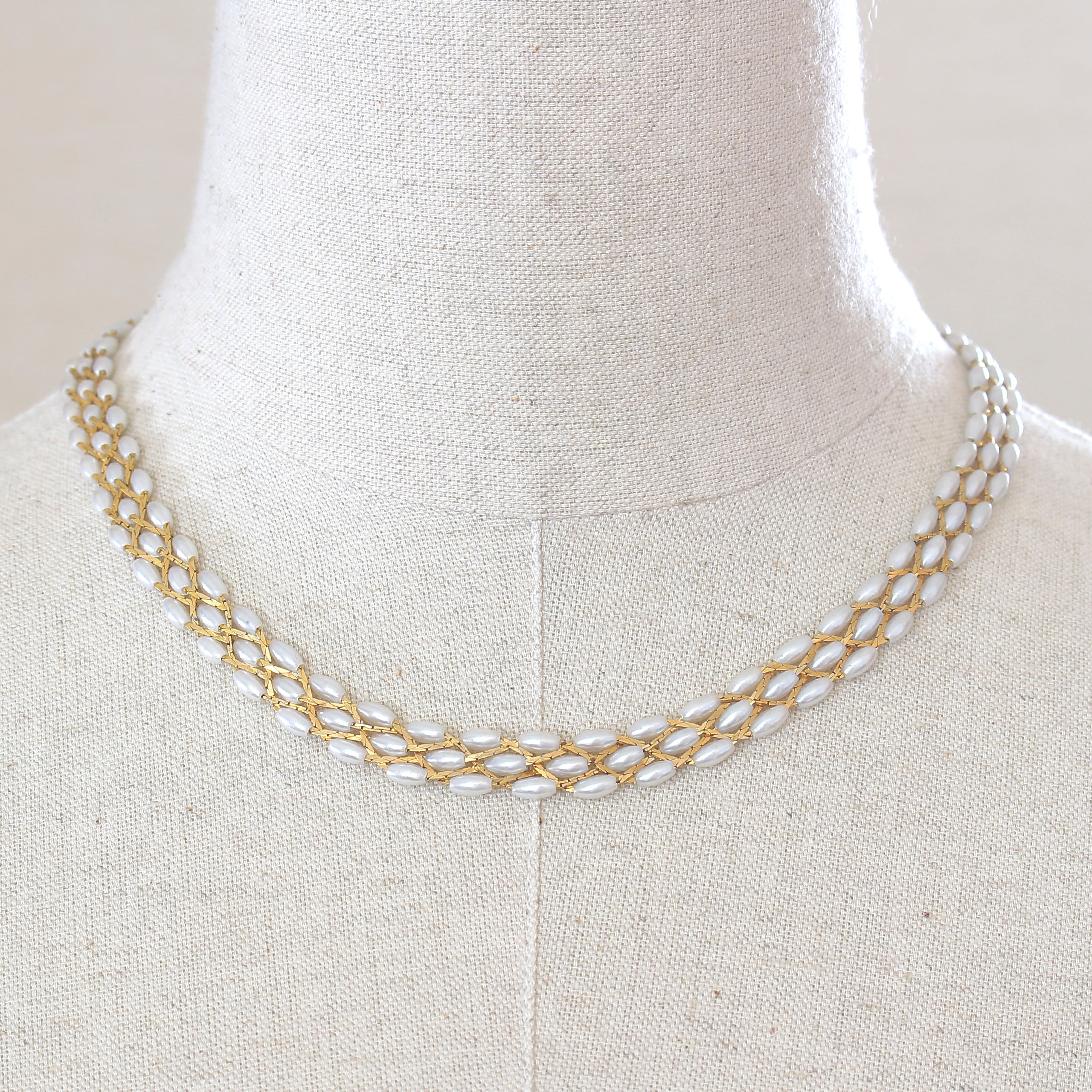 • ライス型パールの編み込みネックレス