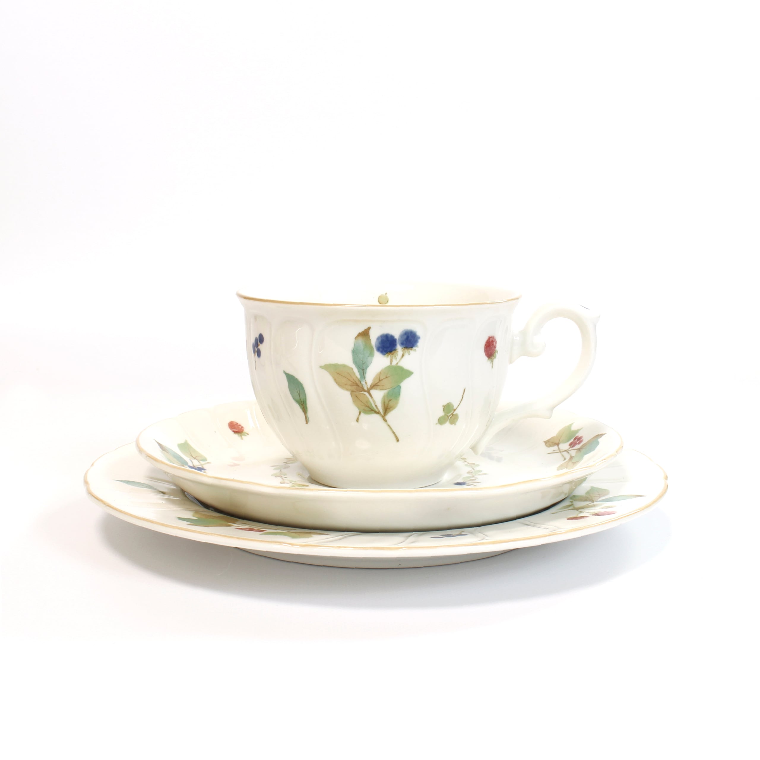 ノリタケ・クラフトーン:"ANNIE BERRY(アニーベリー)"シリーズのトリオセット。柔らかいホワイトをベースに、水彩テイストのベリーたちが散りばめられています。キュートなモチーフではあるものの、落ち着いた色味でまとめられた上品なセットです◎