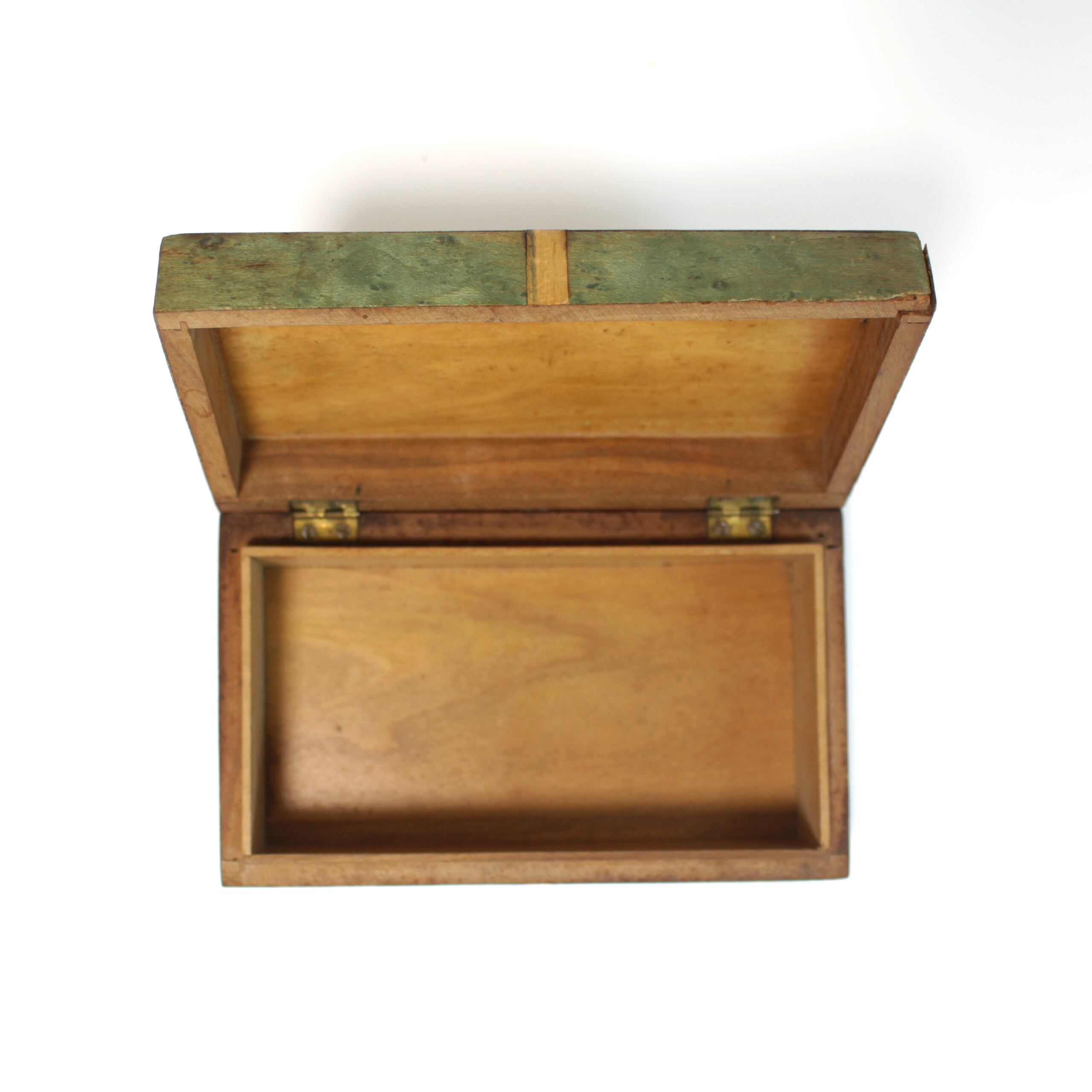 リボンのあしらいが上品なグリーンの木箱。長い間 大切に使われてきたのがよく分かるアンティークらしいアイテムです。特別な日のためのアクセサリーなどをしまって、ドレッサーに飾っておきたくなりますね。